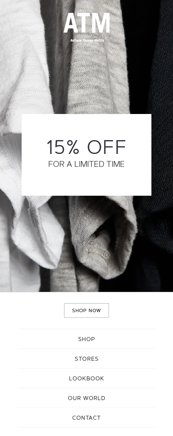 At ATM Anthony Thomas Melillo, I worked closely with the Art Director and head of marketing to create sleek, minimalist digital content that reflected the brand’s effortless luxury. I designed web assets, emails, and social content, ensuring a cohesive visual identity across platforms. I also played a key role in the brand’s website refresh, designing a new web model to enhance the shopping experience.